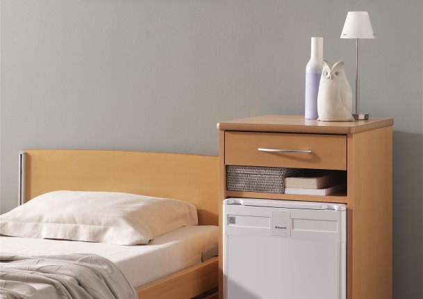 Optioneel kan de nachttafel uitgerust worden met een opklapbare eettafel Livia.